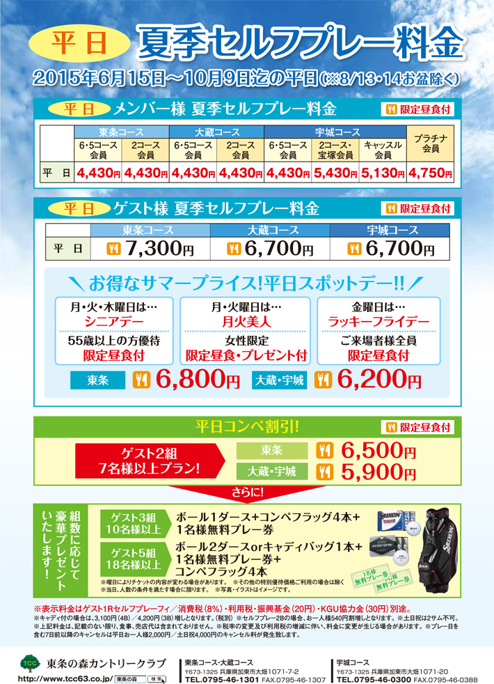 2015年夏季料金案内<平日>